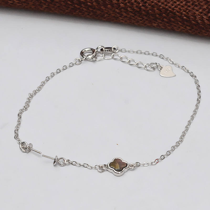 S925 Silver DIY Women's Bracelet with Lucky Grass Shell Empty Pearl Tray Semi-Finished 554 Jewelry Accessories