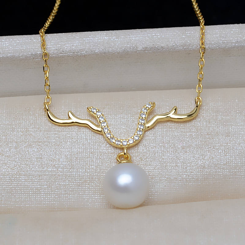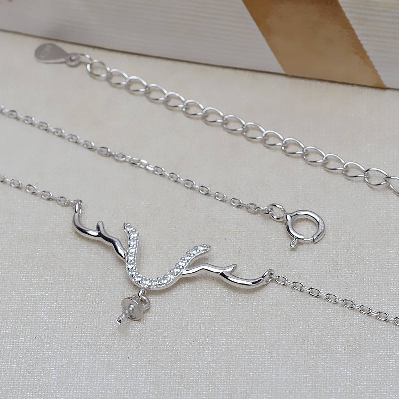 S925 Silver Deer Antlers Pendant Fresh Animal Shaped DIY Silver Jewelry with 8-13 Pearl Accessories 3912 Necklace