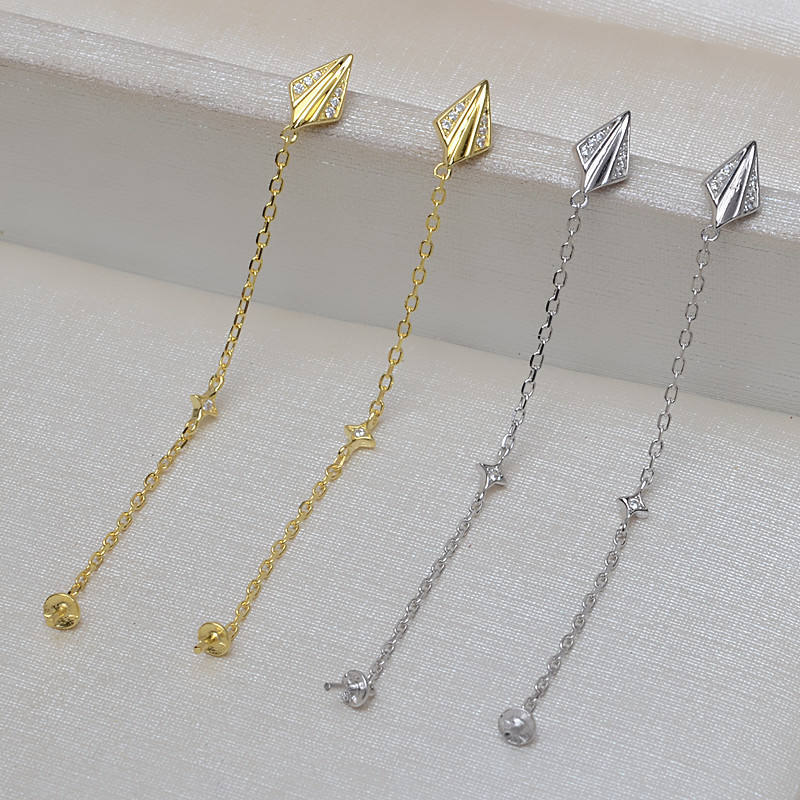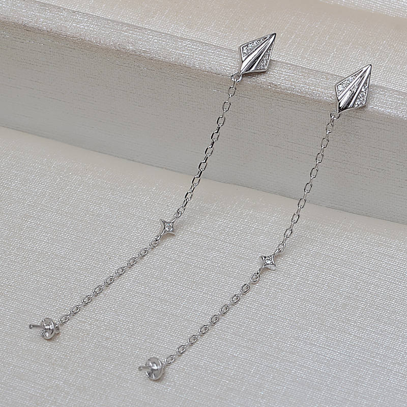 S925 Silver Diamond Earrings for Women 6-10 Pearl Jewelry with Empty Tray Handmade DIY Accessories 4977