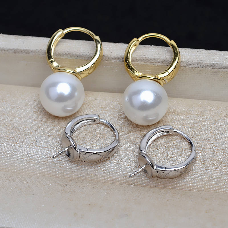 Boucles d'oreilles en argent S925, 8-10 perles, accessoires de bijoux DIY avec surface lisse, bijoux en argent vides - 4808
