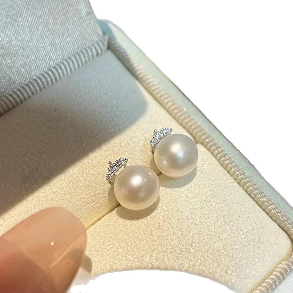 S925 Silver Eyelashes Curved Eyes Elegant Compact 7mm Round Flawless Freshwater Pearl Earrings Bright Earrings