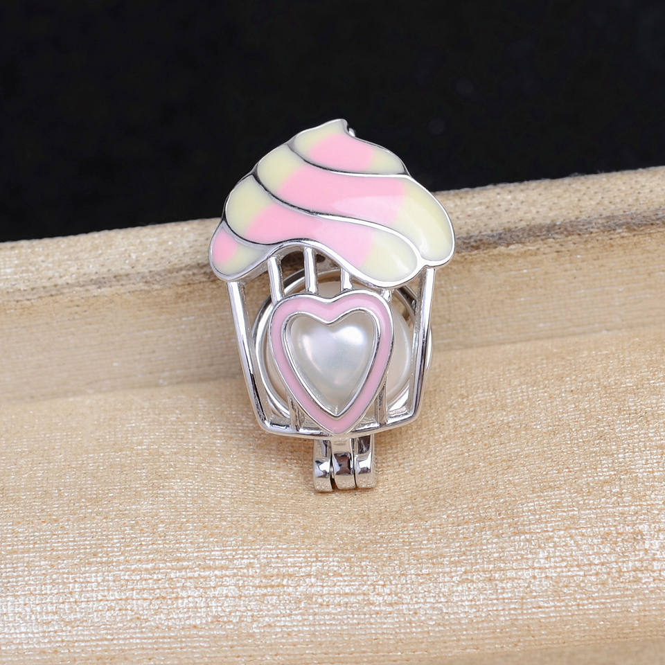 Cage à perles vide Wenchi en argent S925 pour perles de 8-9 mm, support pour pendentif crème glacée, accessoires de bricolage, bijoux en perles, bagues de mode