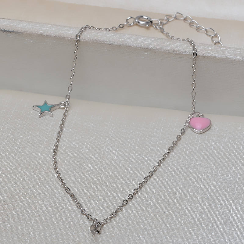 S925 Silver Fashion Charm Bracelet 24cm Five-Pointed Star Heart-Shaped Droplet 6-10 Pearl DIY Accessory Holder 3304