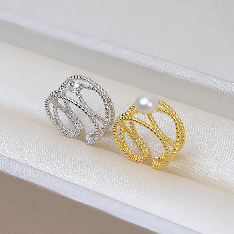 Bague ajustable en argent S925 pour femme, torsades coréennes, 6-8 perles creuses, support DIY, accessoires pour bagues tendance
