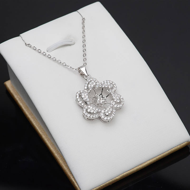 S925 Silver Flower Shaped Pendant Holder Women's Fine Necklaces 10-11 Pearls DIY Accessory Semi-Finished Product Temperament