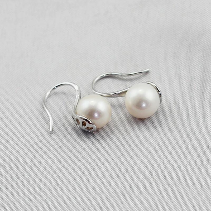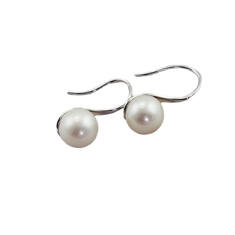 S925 Silver Freshwater Pearl 9-10mm Round Ear Hooked Earrings Elegant and Simple Spoons with High Heels High Temperament