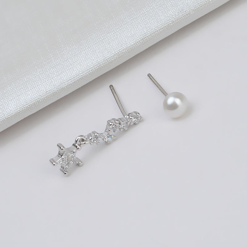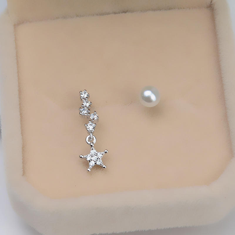 Wenchi S925 Silver Heart-Shaped Earrings for Women 8-9 Pearl DIY Accessories 18K Gold Holder Personalized Jewelry Model 16218
