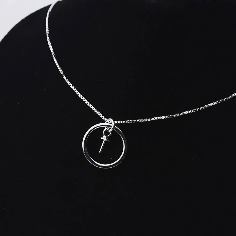 S925 Silver Jewelry Women's 5-8mm Pearl Pendant Collarbone Chain Set DIY Accessories Empty Holder Jewelry Components