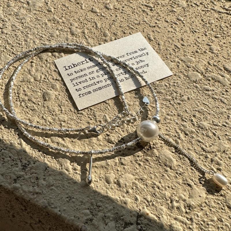 S925 argent Version coréenne conception de niche forte lumière perle gland cassé collier rétro Simple mode clavicule chaîne