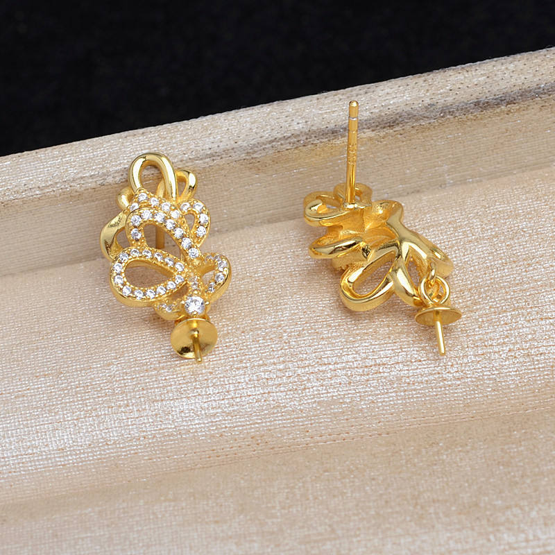 S925 Silver Large Water Droplet Earrings Holder 3mm DIY Accessory for Pearl Jewelry Fashionable 10-12 Semi-Finished Product