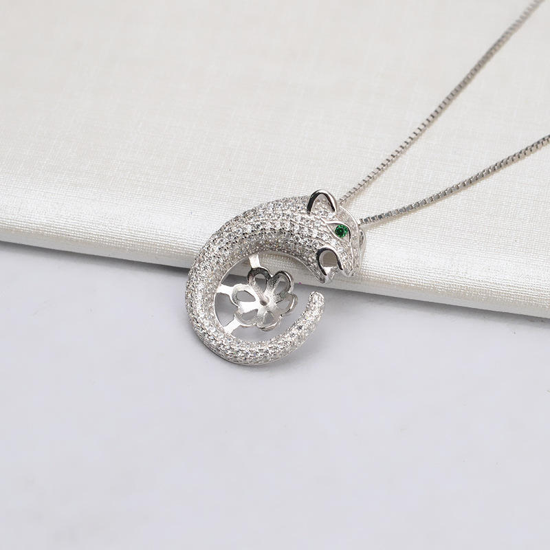 Pendentif tête de léopard en argent S925 avec perle de 13-14 mm, accessoires de bijouterie DIY, plateau d'incrustation 790