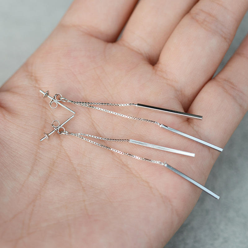 S925 Silver Long Tassel Earrings for Women Simple Religious and Trendy Pearl Jewelry DIY Accessories with Empty Holder 3920