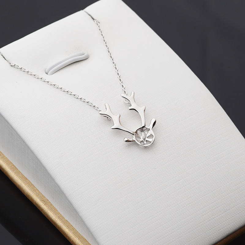 S925 Silver Necklace for Women Christmas Deer Set Elk Horn DIY Pearl Jewelry Accessories Empty Clavicle Fine Pendants Charms