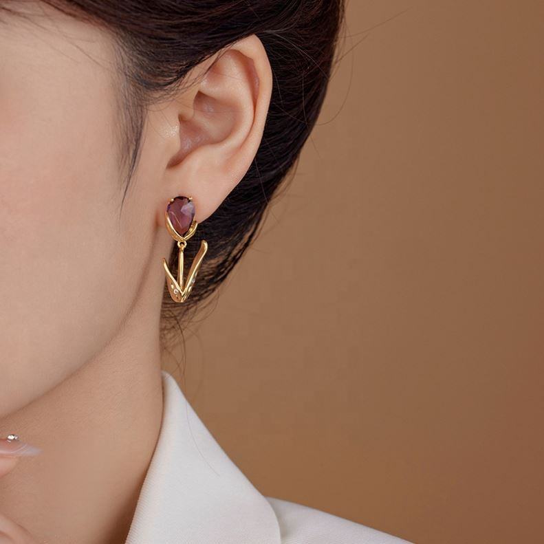 Boucles d'oreilles clous en argent S925, super féériques, au tempérament doux, haut de gamme, à la mode, avec zircon en forme de goutte d'eau, fleur de tulipe
