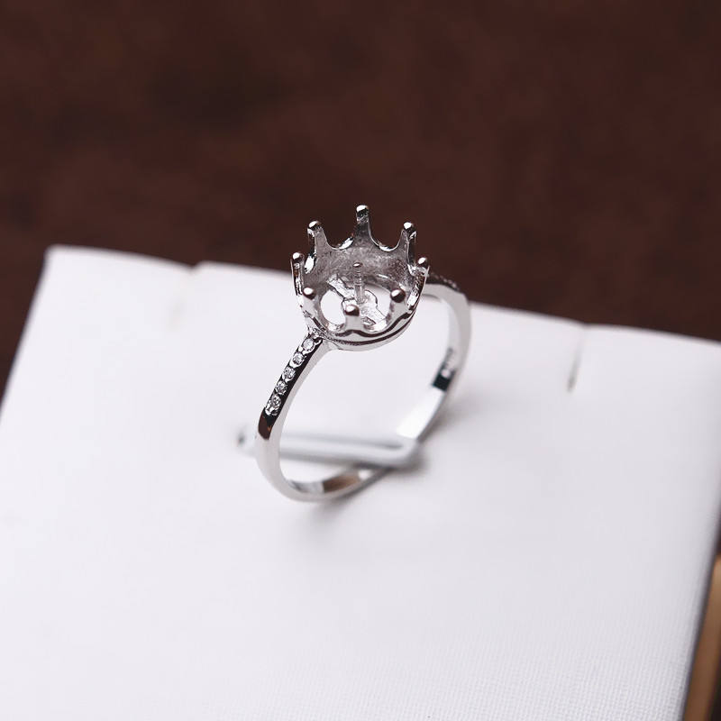 Anneau ouvert et fermé en argent S925 pour femme, accessoire de bricolage, petit design couronne, support de perle de 7,5 à 8,5 mm, taille de perle de 6 mm, 118 apprêts de bijouterie