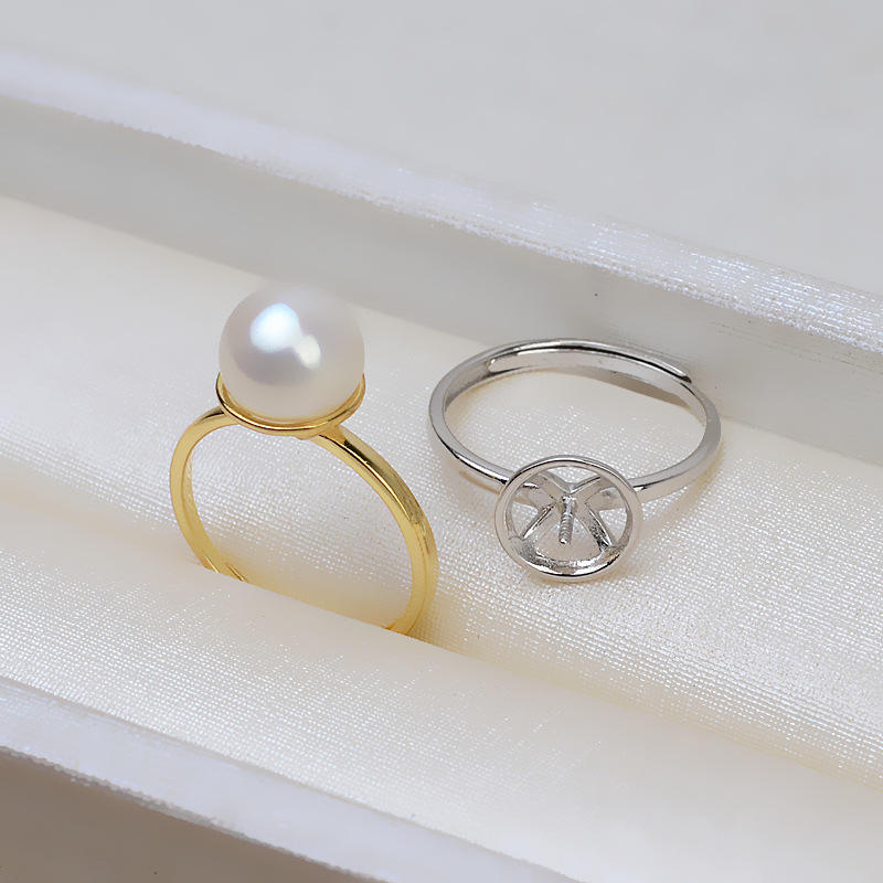 Anneau ouvert en argent S925, boucle réglable, simple, creux, grande plaque de perle, composants de bijoux en perles DIY, 53 accessoires