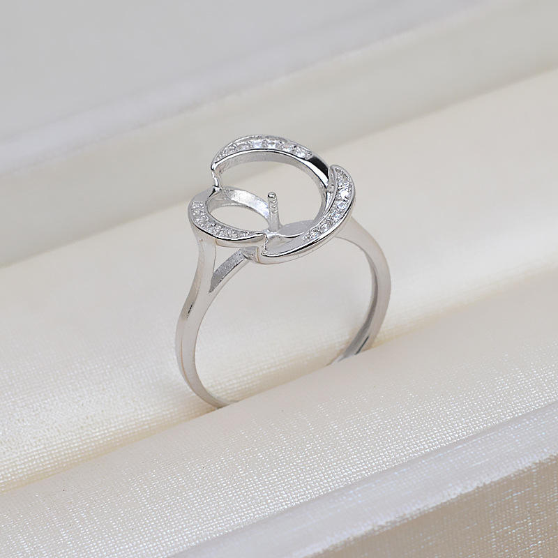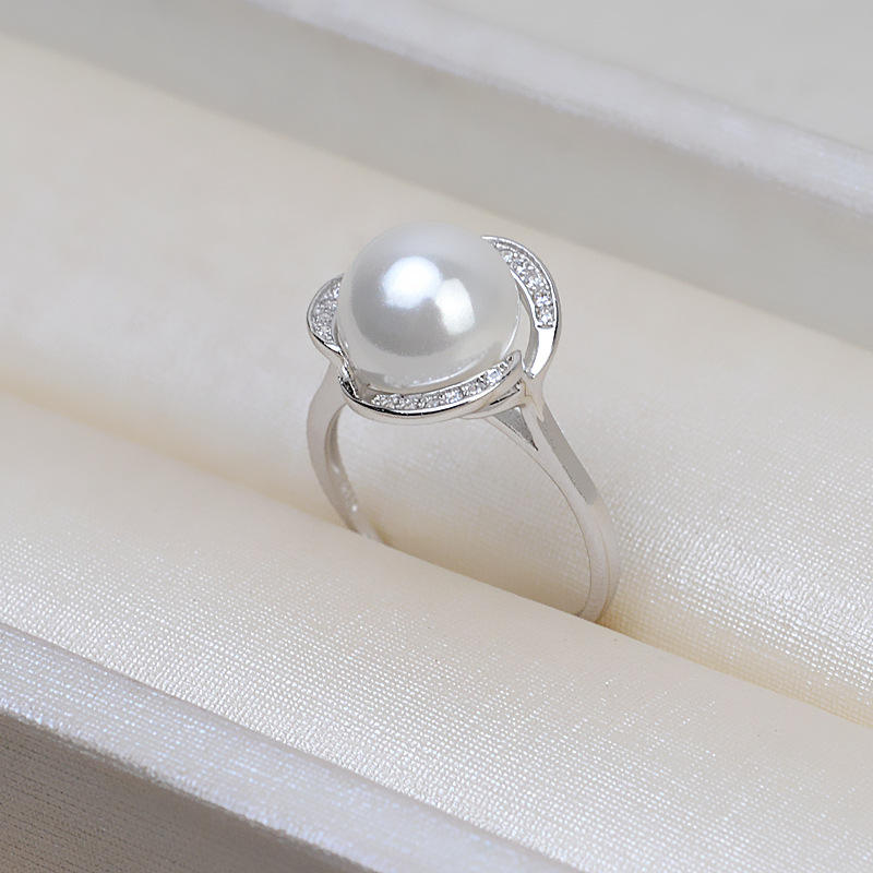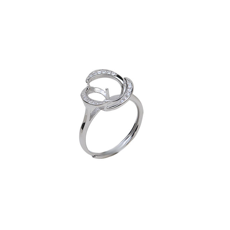 Bague ouverte en argent S925 pour femme avec perle réglable de 9 mm, support d'accessoires DIY, taille 195, bagues à perles