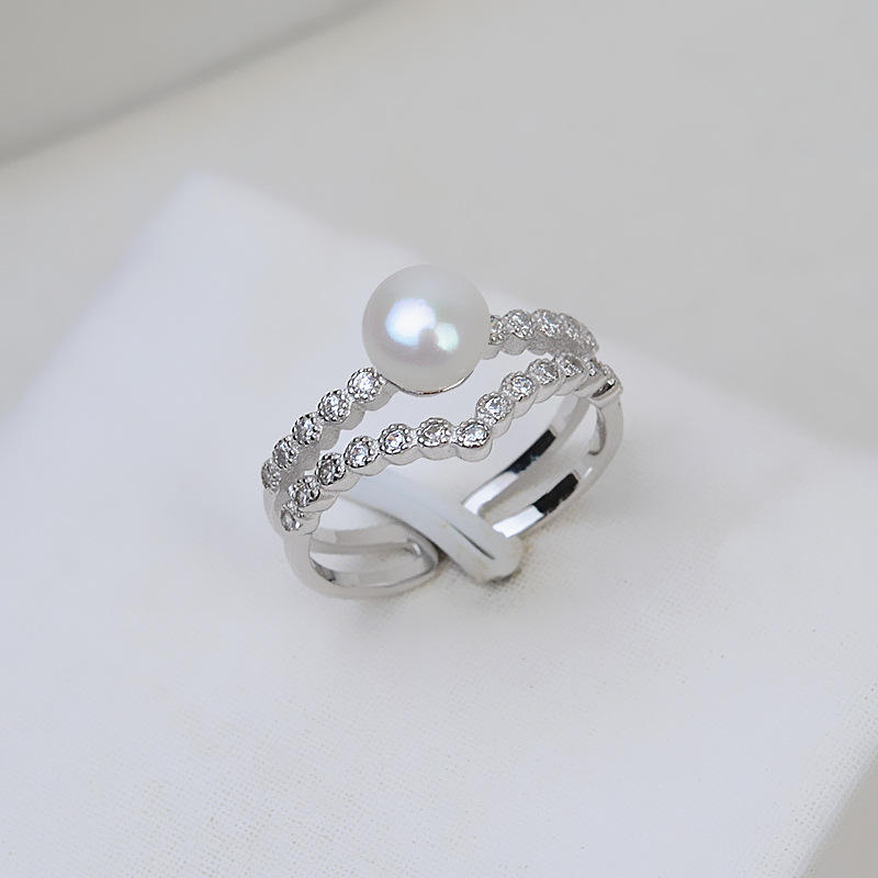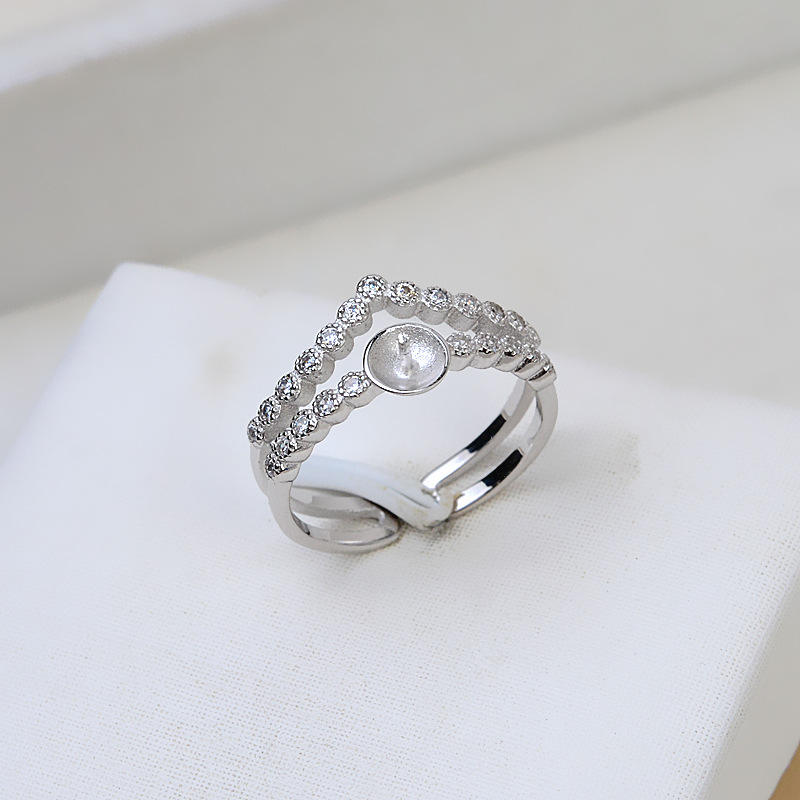 Bague ouverte en argent S925 pour femme, réglable, taille 7-8, avec perle et accessoires DIY, plateau vide pour bijoux 242
