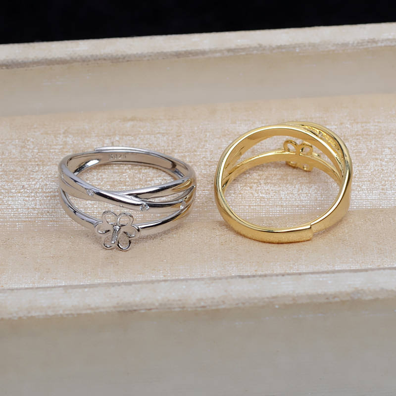 Bague ouverte en argent S925 réglable pour doigts 8-10 avec incrustation de perles plaquées or tendance, accessoires de mode JG5310, support vide