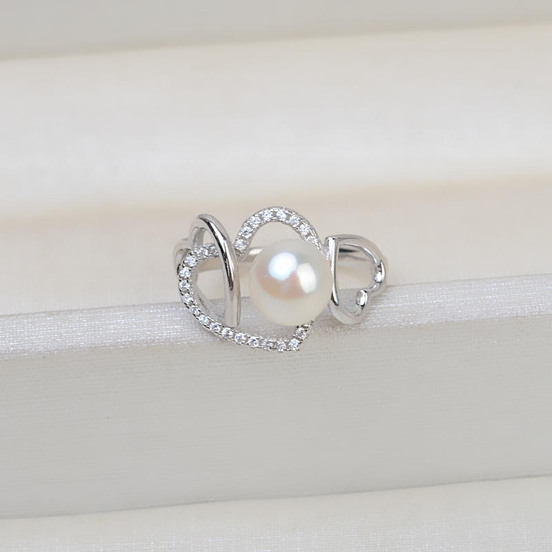 S925 Silver Open Ring Adjustable Love Linked Finger Ring 6-7 Pearl Jewelry Accessory Holder 229