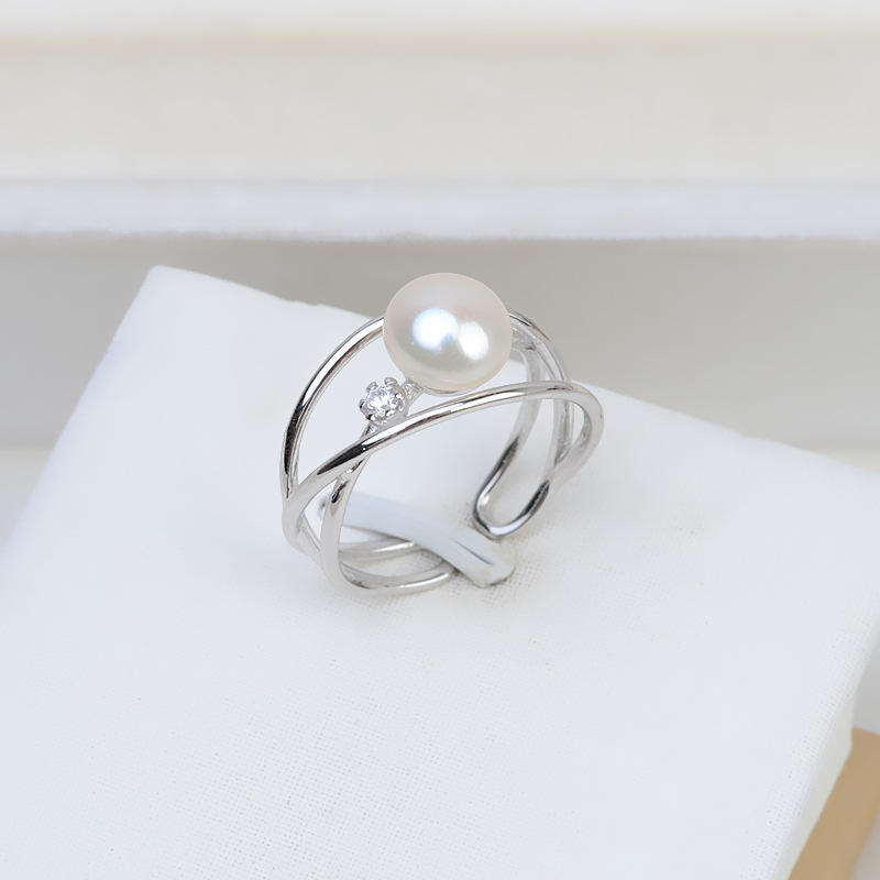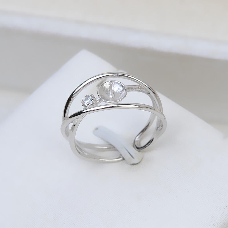 Bague ouverte en argent S925 pour femme, taille réglable 6-8, perle, accessoires de bricolage, support vide, composants de bijoux, 169