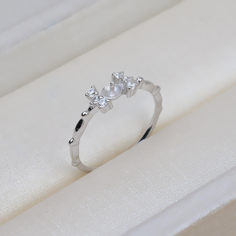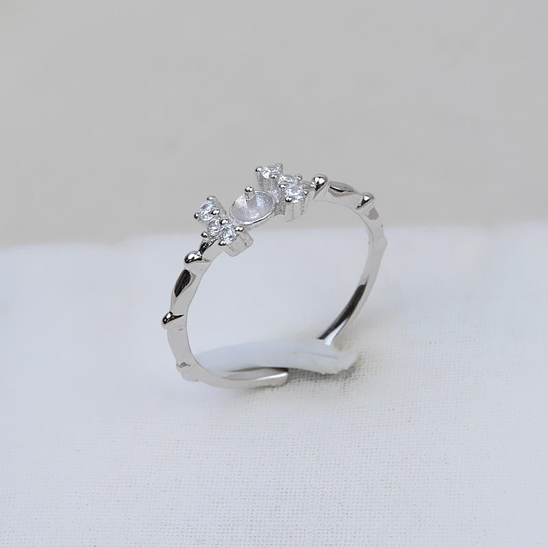 Bague ouverte en argent S925 Wenchi, simple et élégante, pour femme, avec incrustation de diamant taillé, accessoires DIY 4-5, support vide pour perle 141