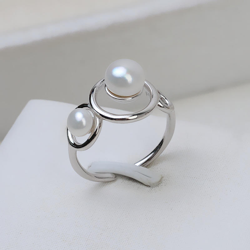 Bague ouverte en argent S925 pour femme, double perle, accessoires de bricolage avec taille réglable, sertissage, 103 perles, support vide