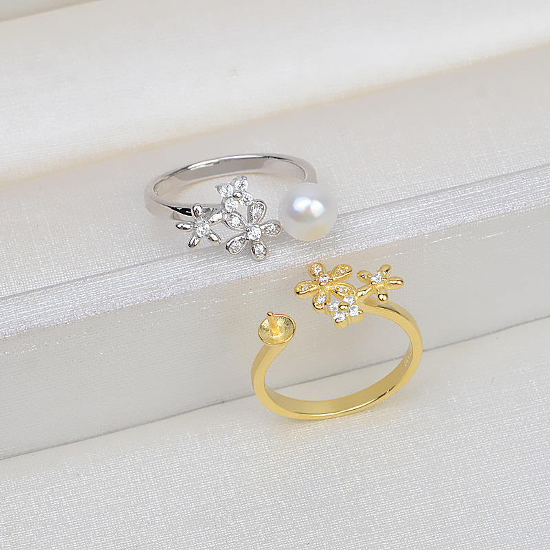 S925 Silver Open Ring for Women Small Flower Design 6-9 Pearl DIY Jewelry Accessories Tray Semi Finished 327