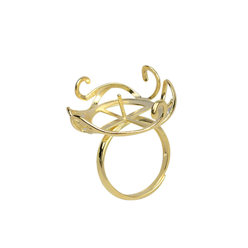 S925 Silver Opening Flower Shaped Leaf Lace Inlaid Ring 1802 Baroque Accessory Pearl Hollow Holder for DIY Jewelry Creations