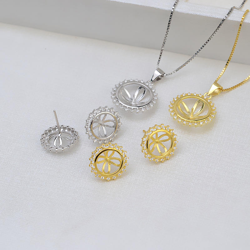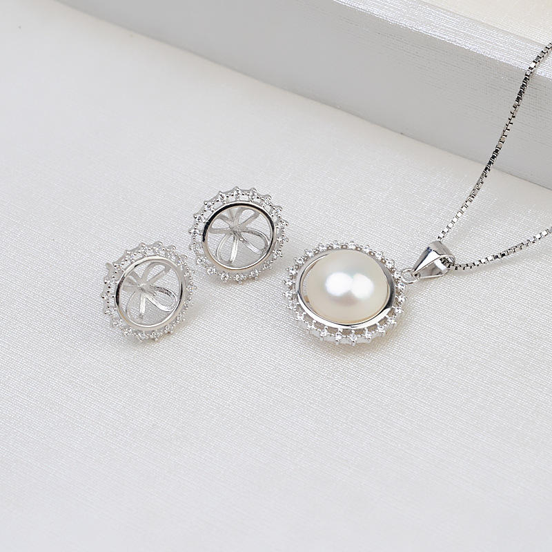 S925 Silver & Pearl Earrings DIY Jewelry Accessories Women's Pendant Head Set with Empty Tray Semi Finished Product 1317