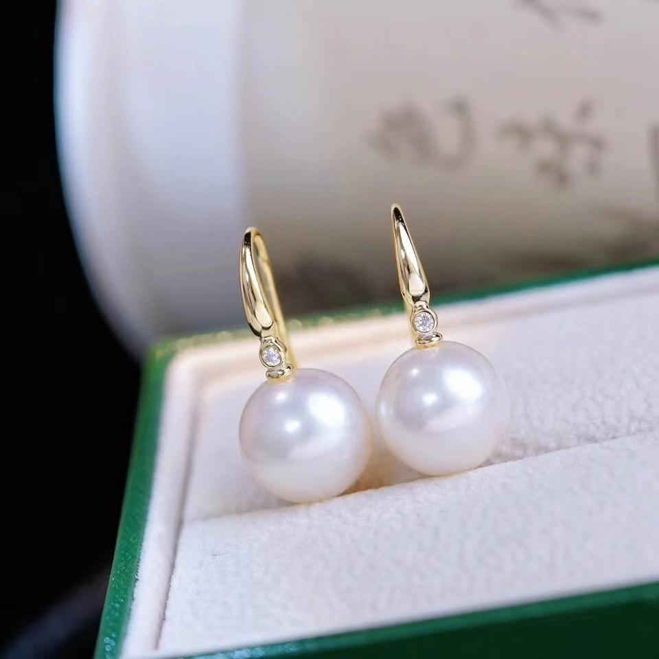 Boucles d'oreilles en argent S925 avec perles de haute qualité, grosses perles de 9-10 mm avec cœur rond sans défaut, crochets d'oreille sans trou