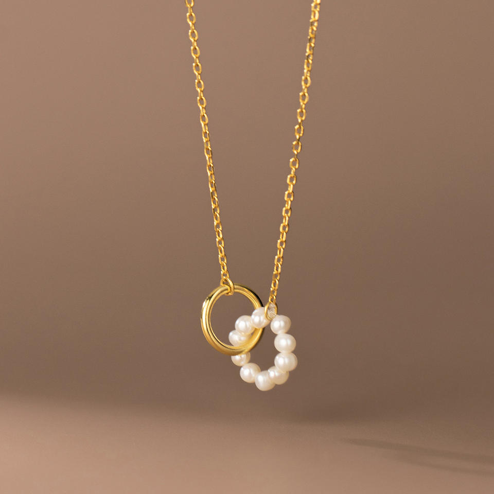 S925 Silver Pearl Necklace for Women Short Retro Style Thick Chain Japanese & Korean Version Bead Necklace D8633