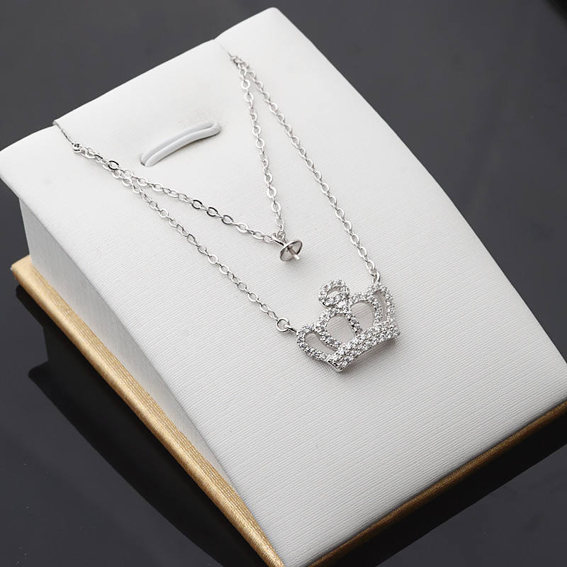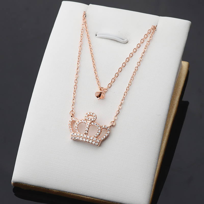 Collier pendentif en argent S925 pour femmes, chaîne à double rangée avec fleur et couronne pour accessoire de mode DIY
