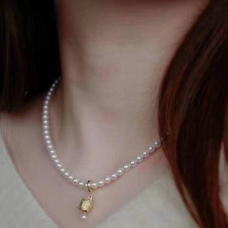 Pendentif en argent S925, accessoire de bricolage avec bouton de support vide, carillon à vent, collier avec perles de 6 à 8 mm, collier de perles 30465