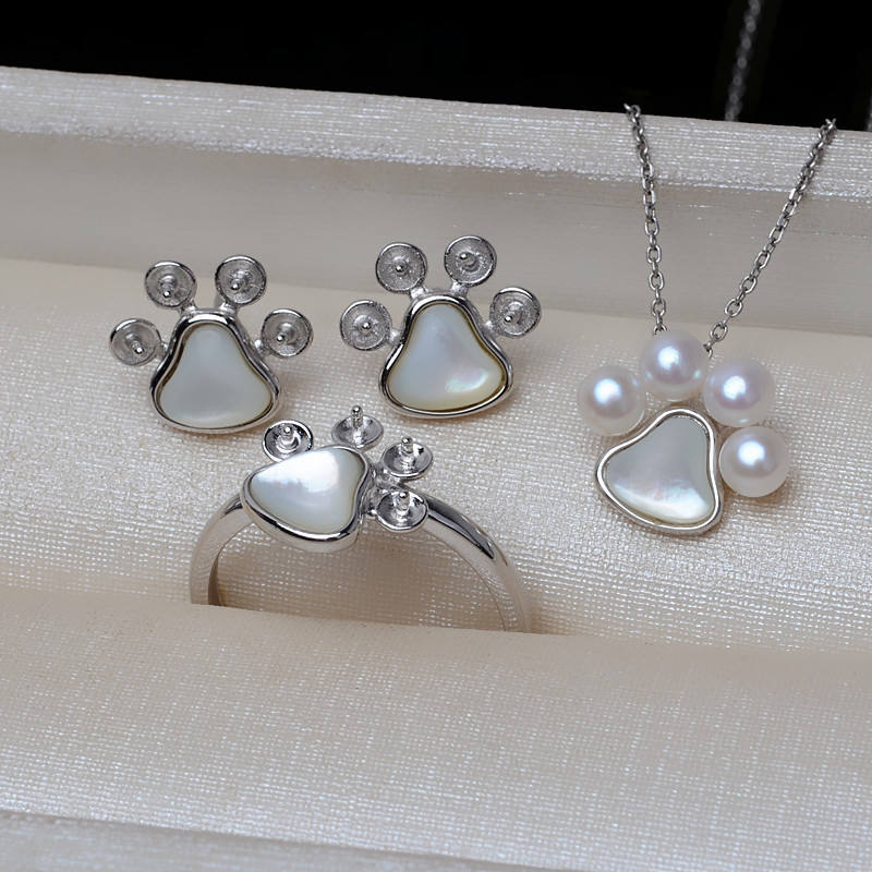 S925 Silver Pendant Earnail Ring Bracelet Cat Claw Footprint Set 3.5-4 Feet Pearl Holder DIY Accessories Fine Jewelry Sets 3208