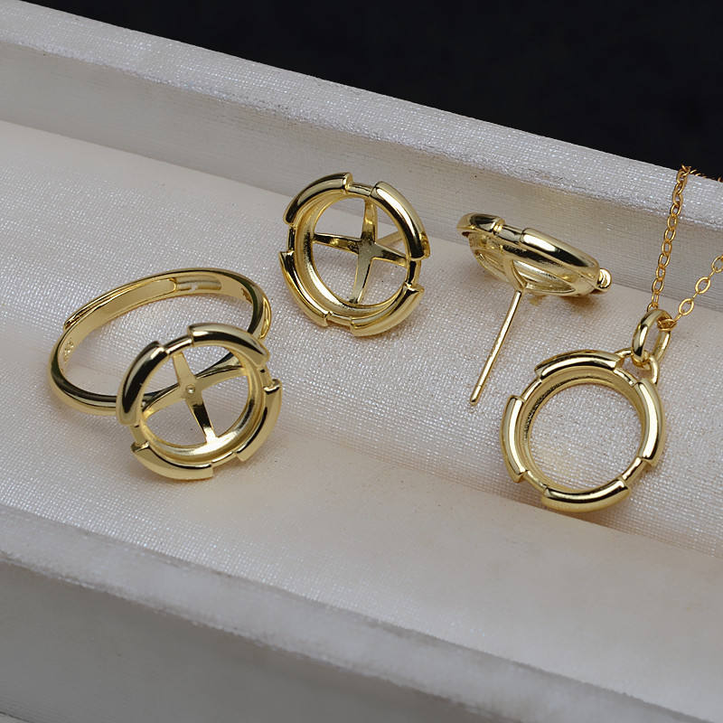 WENCHI S925 Argent Ensemble de supports de boucles d'oreilles à pendentif rond 10,5 mm, sertissage vide pour la fabrication de bijoux en perles et coquillages 40029
