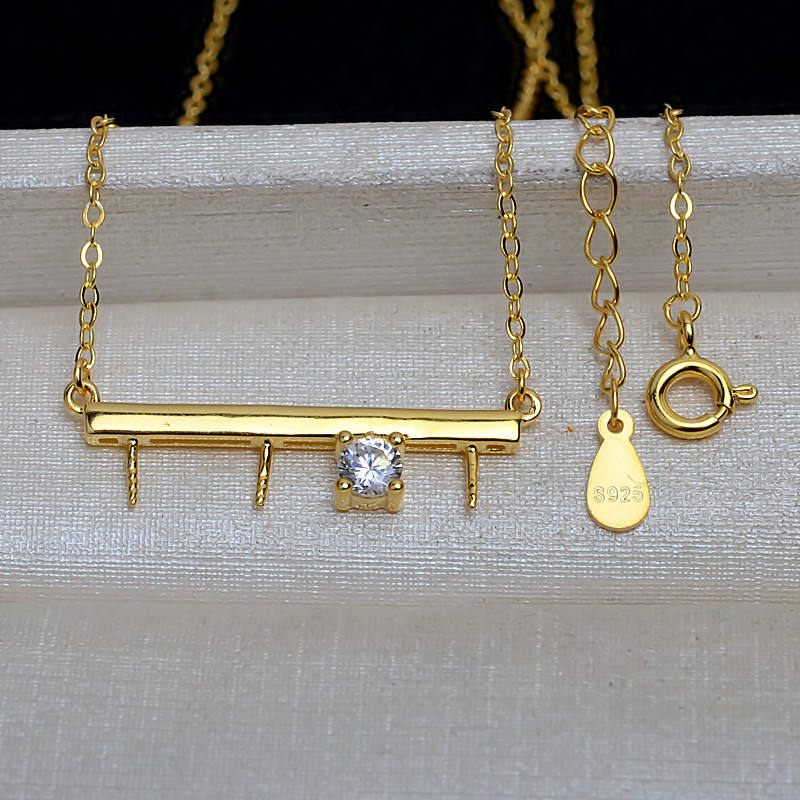 S925 Silver Pendant Necklace with 3 Pearls Pearl Holder 7-8 Empty Pendant Set DIY Jewelry Accessories 4117