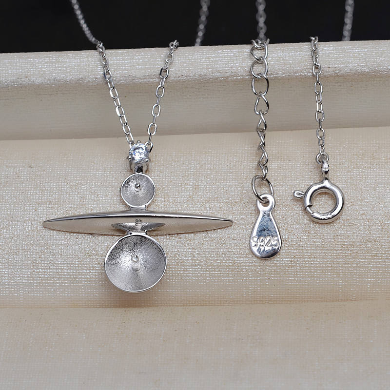 S925 Silver Pendant Necklace with 5-6mm & 9-10mm Empty Pearl Holder Hanging Pendant Set Chain DIY Jewelry Accessories Item 4155