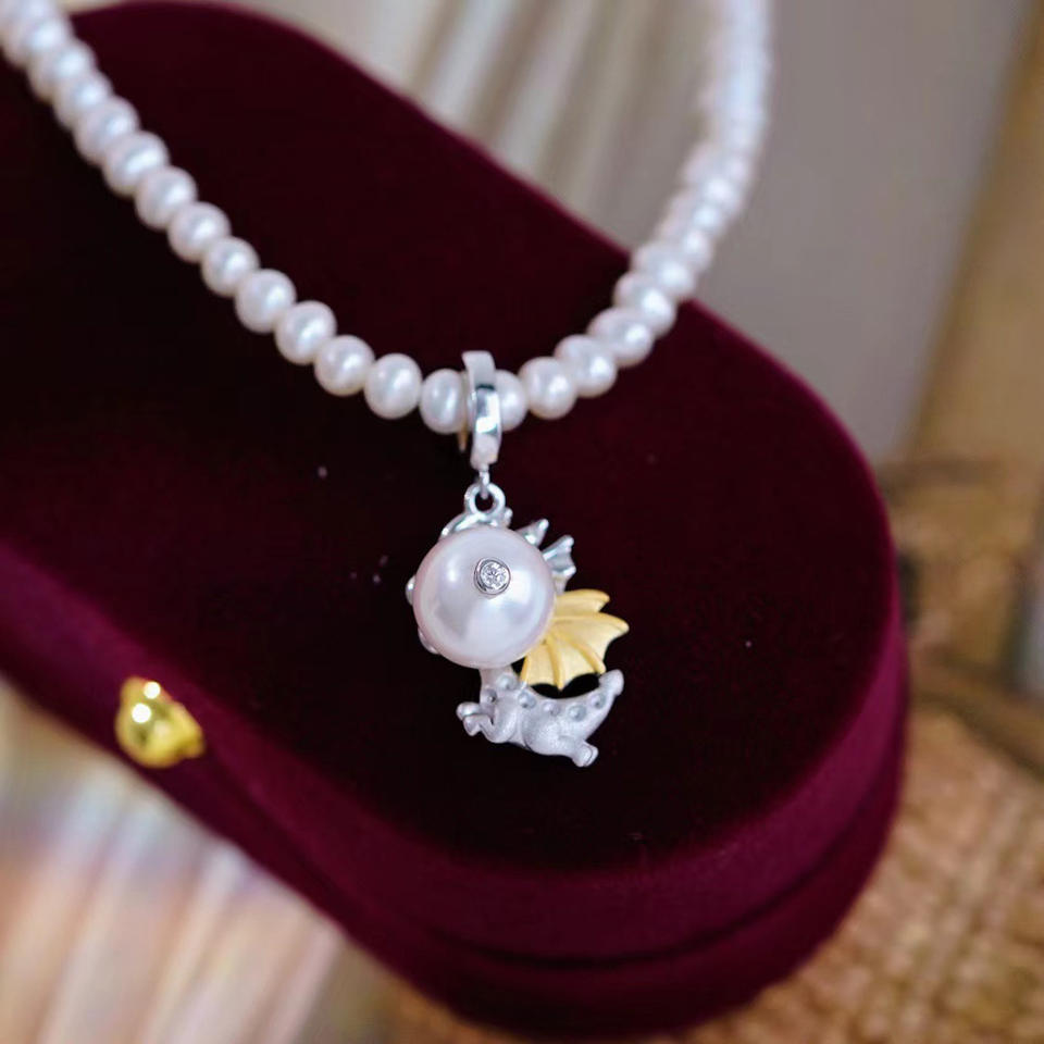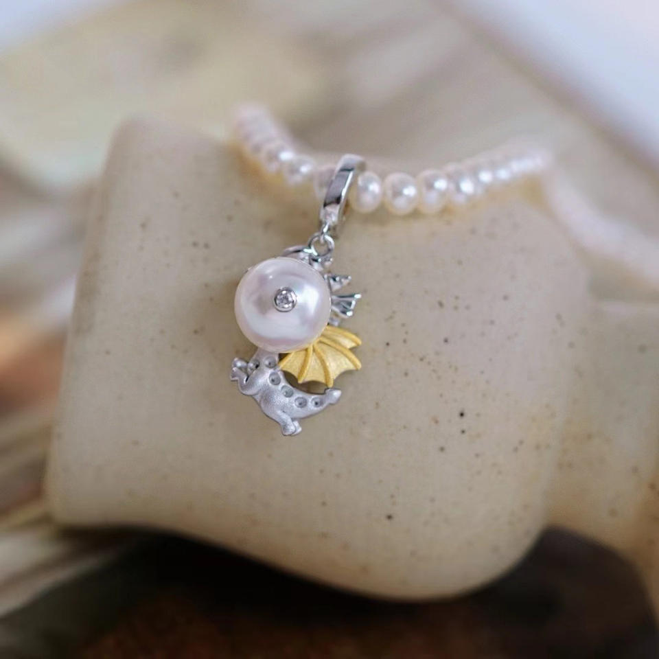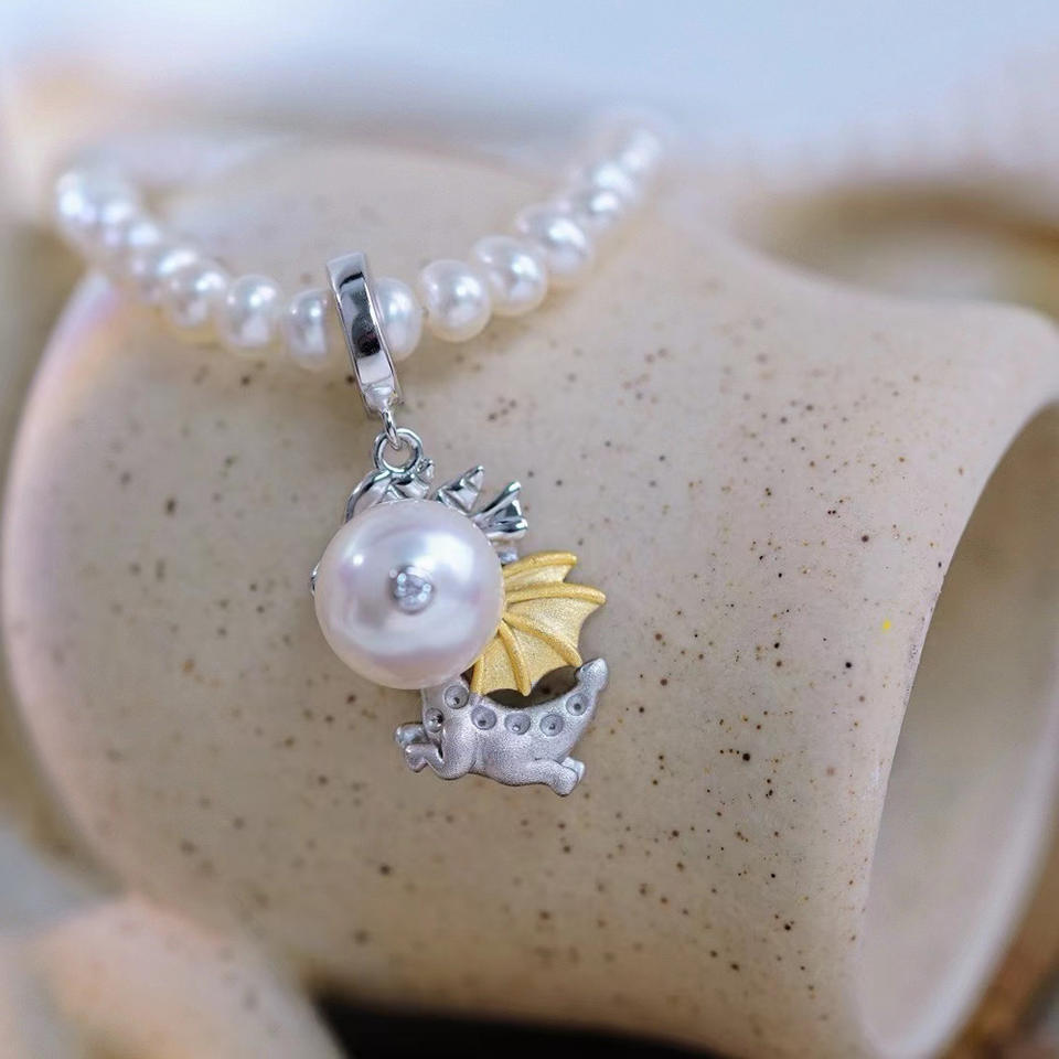 Pendentif en argent S925 avec petite chaîne de dragon volant DIY Perles de 7-9 mm 31100 Accessoire Accessoires Perles Pendentifs Charms
