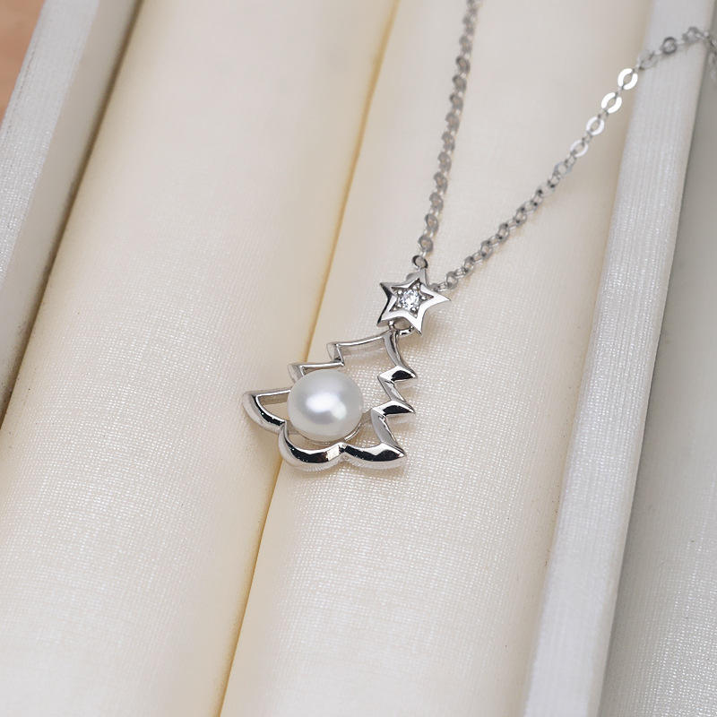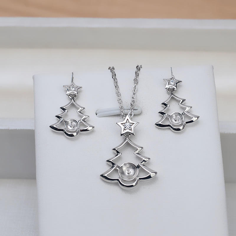 S925 Silver Pentagram Tassel Asymmetrical Earrings Personalized 4-6 Pearl Holder DIY Accessories Fine Jewelry Set Model 1106