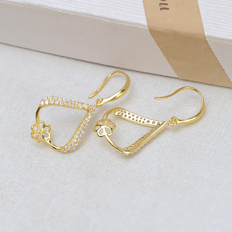 Boucles d'oreilles à grand crochet personnalisées en argent S925, version coréenne, support de perle 9-10, accessoires DIY 1199