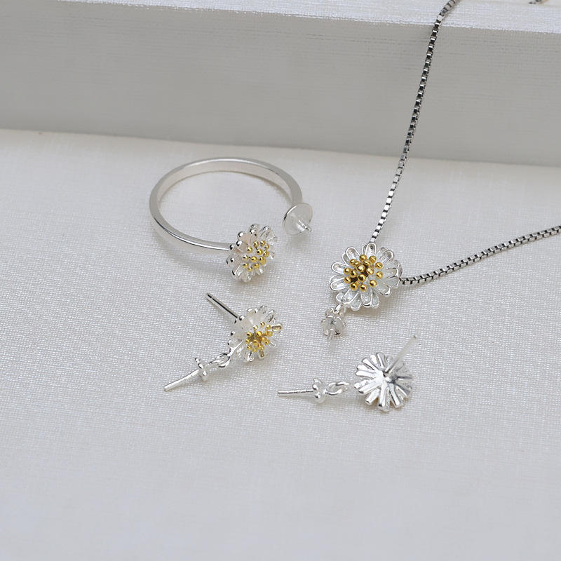 S925 Silver Plain Chrysanthemum Pendant Earnail Personalized Female Bead Ring DIY Jewelry Accessories Fine Jewelry Sets Empty