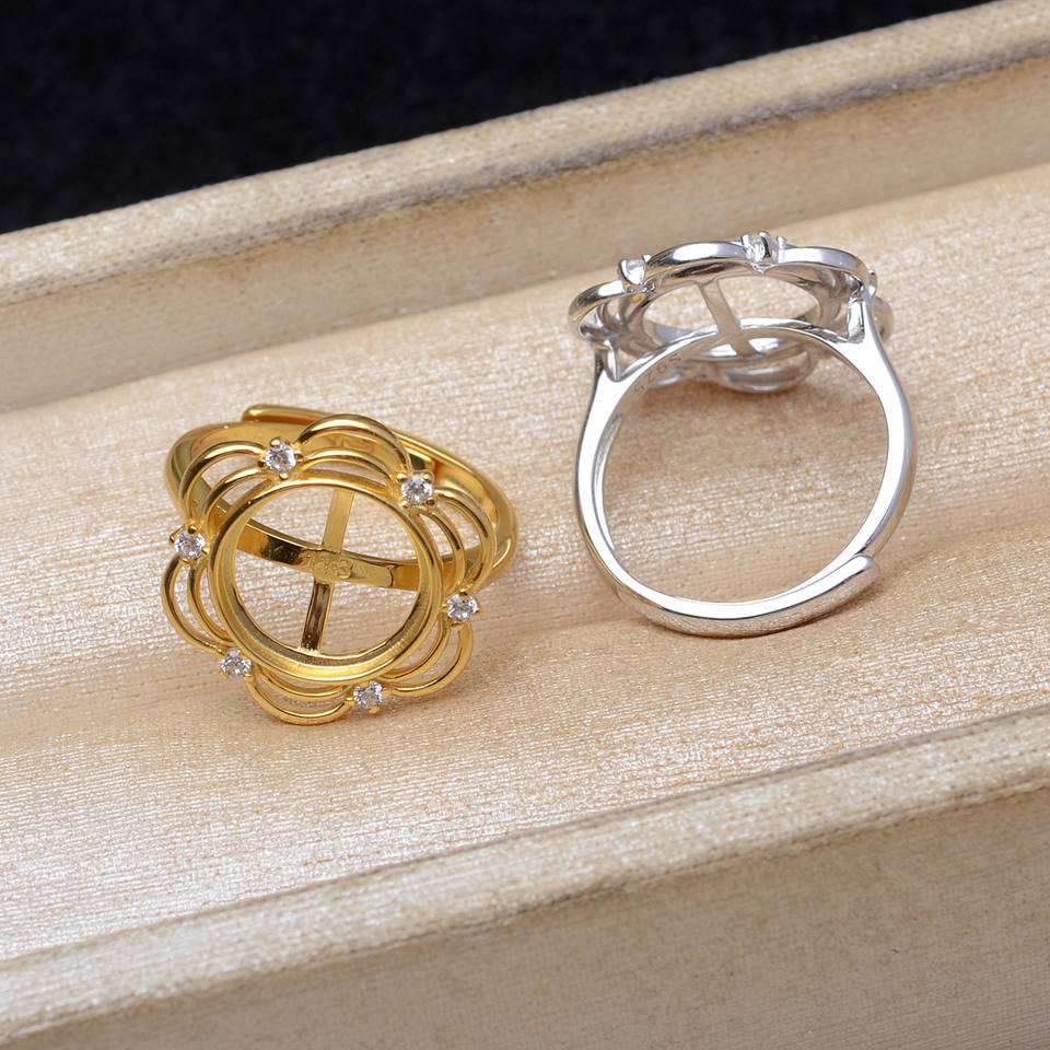 Support de boucles d'oreilles en argent S925, motif fleur rétro et coquillage, pour perles de 11,1-11,3 mm, accessoire de bricolage pour bijoux, apprêts de bijouterie 6094