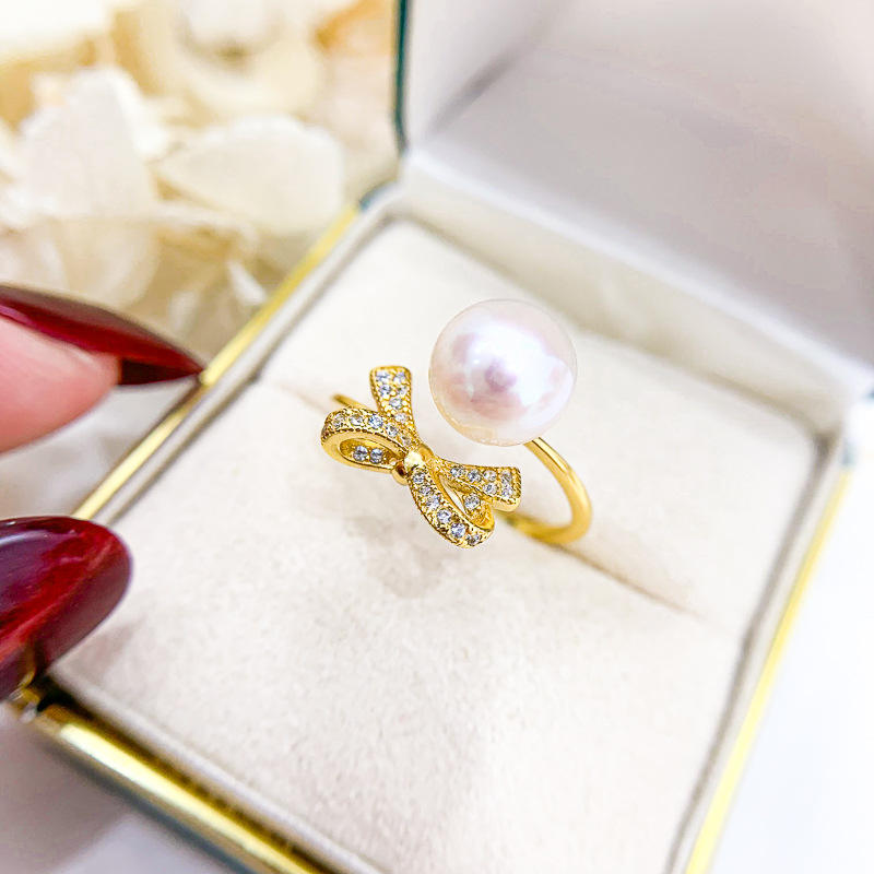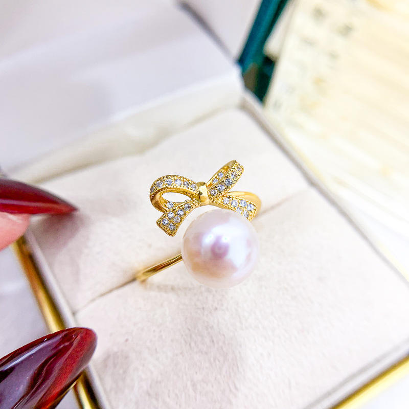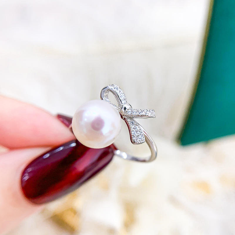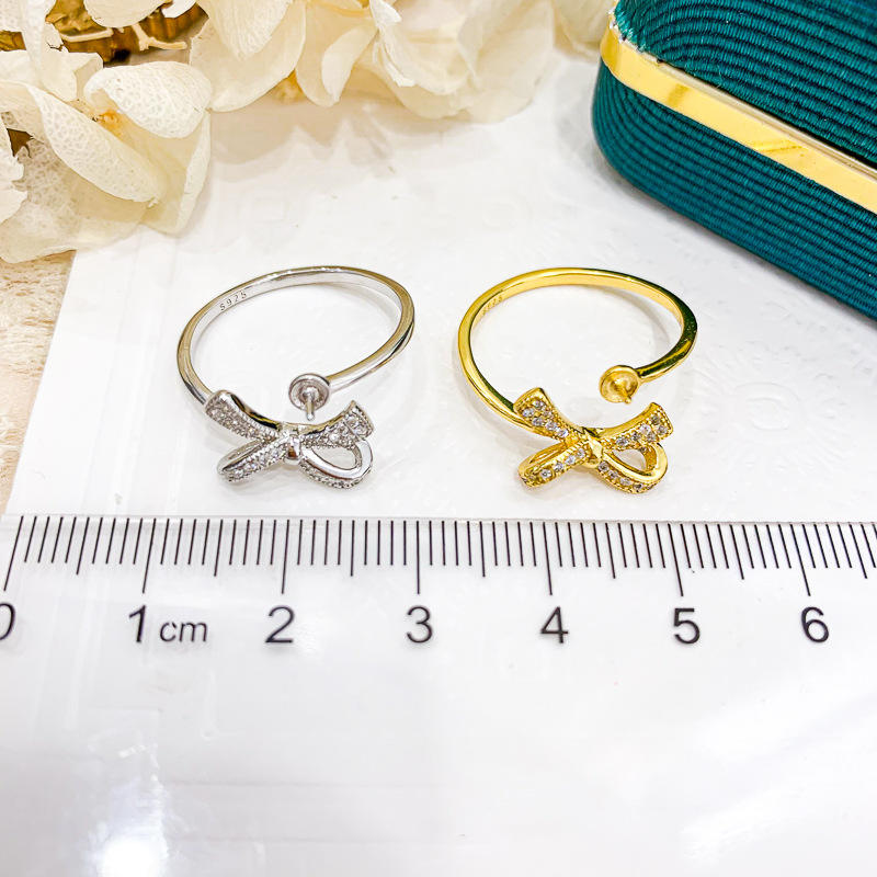 Anneau en argent S925, accessoire DIY, porte-anneau en forme de nœud avec perles rondes de 6 à 8 mm pour la fabrication de bijoux 1477