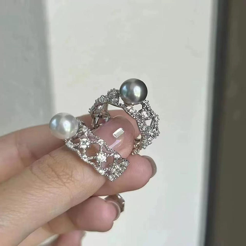 S925 Silver Ring Stand DIY Pearl Accessories Fashion Edition 7-8mm Flat Ring with 10484 Silver Jewelry