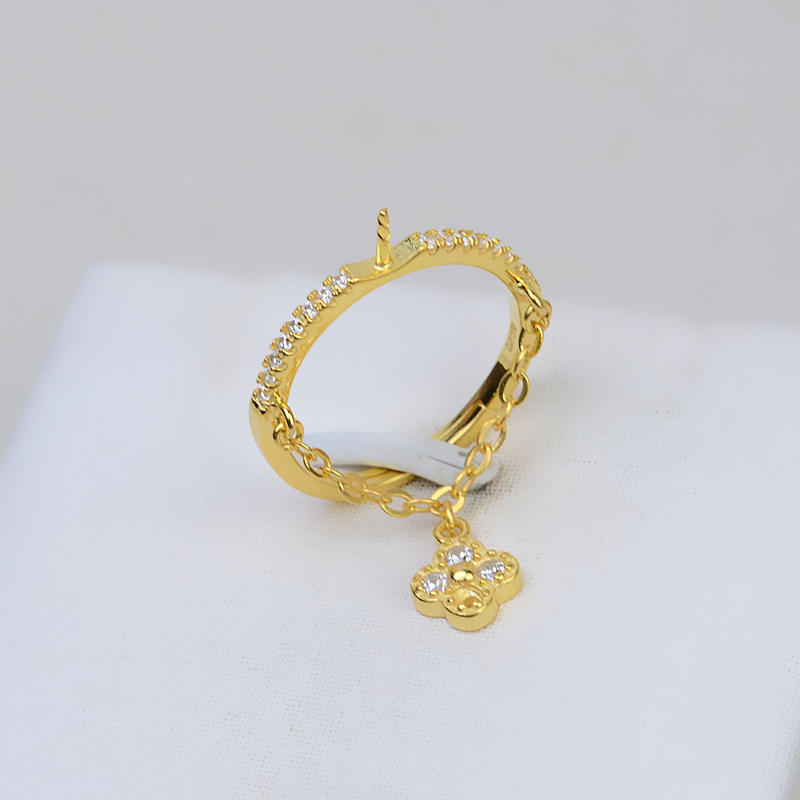 Bague en argent S925 avec placage 18 carats, bouche ouverte pour femme, incrustation de perles DIY, chaîne en herbe porte-bonheur et 7-8 accessoires, plateau vide 238