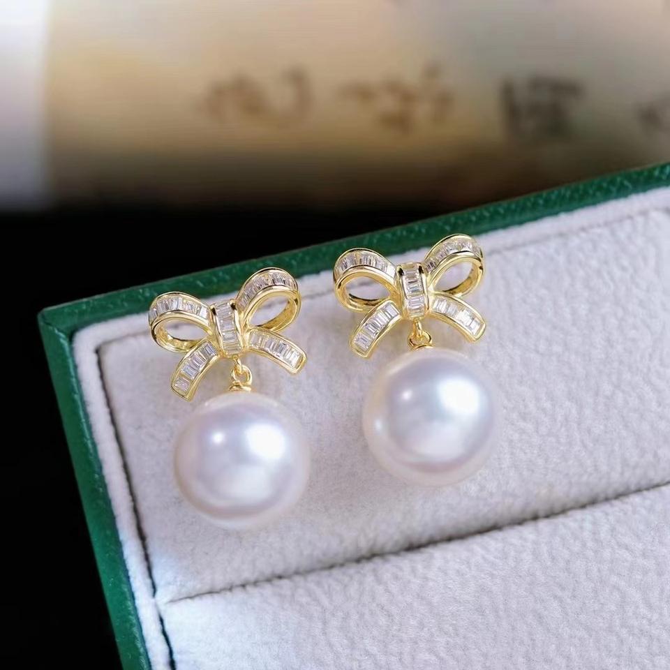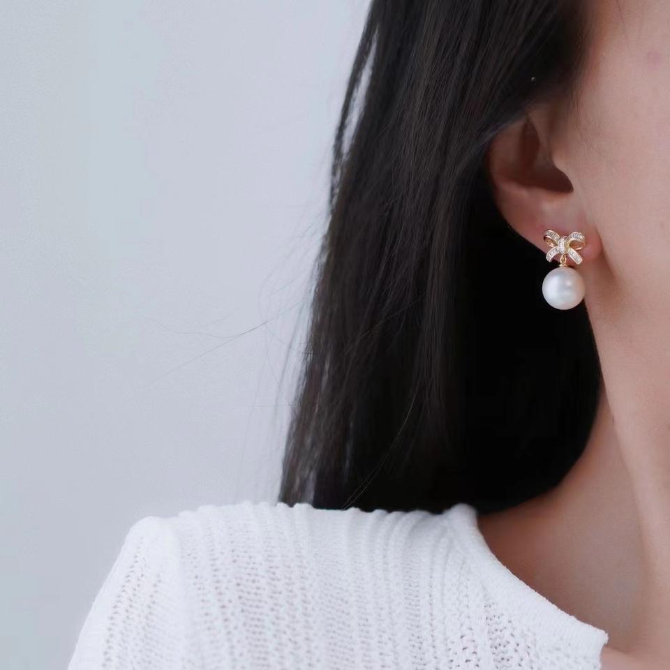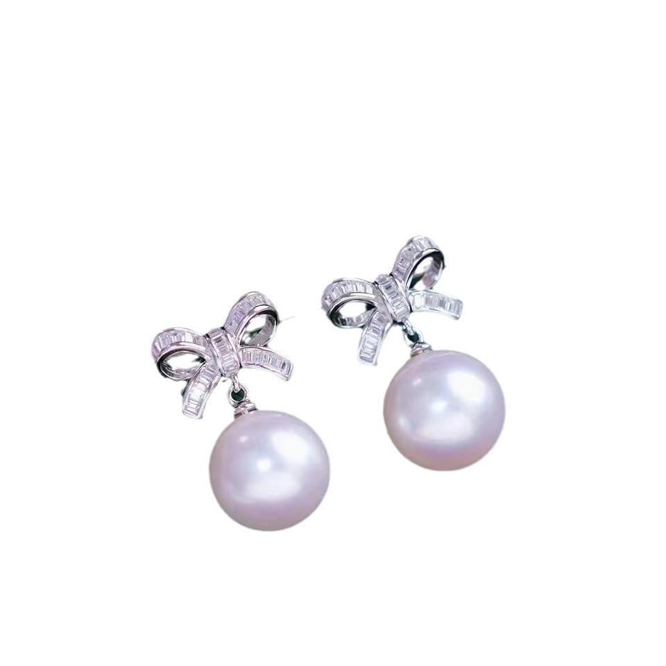 "S925 Silver Round Flawless Seedless Freshwater Pearl 9-10mm Butterfly Earrings"
