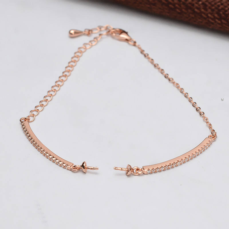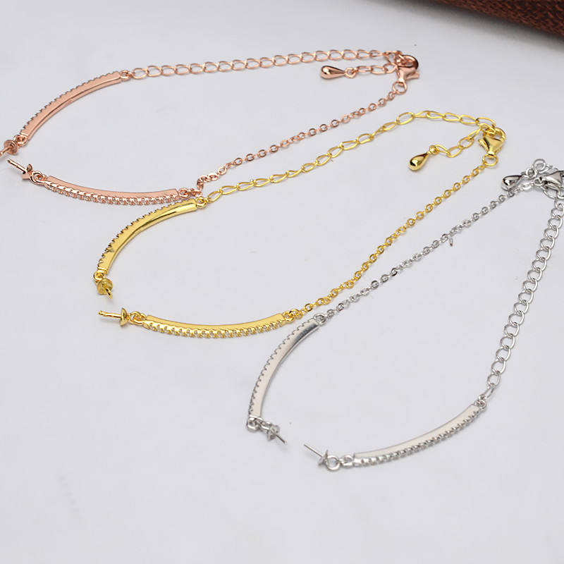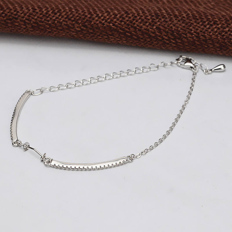 Bracelet fantaisie en argent S925 semi-fini avec zircon pour bijoux en perles DIY, accessoires et composants de mode personnalisés