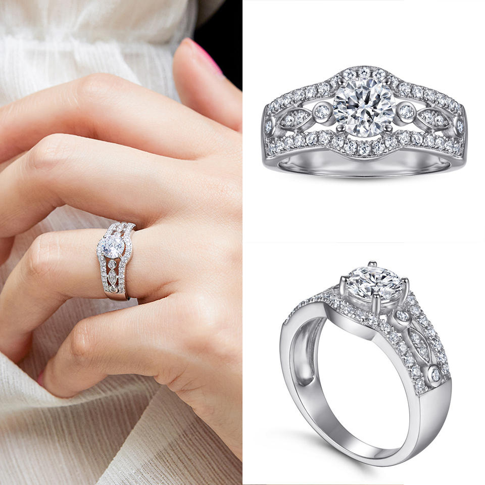 S925 argent ensemble mode Simple ensemble de bijoux Design de luxe mariée Zircon anneau boucles d'oreilles collier ensemble bijoux pour femmes