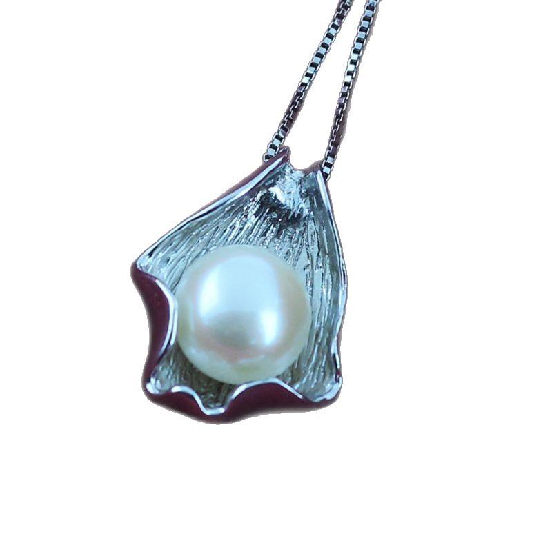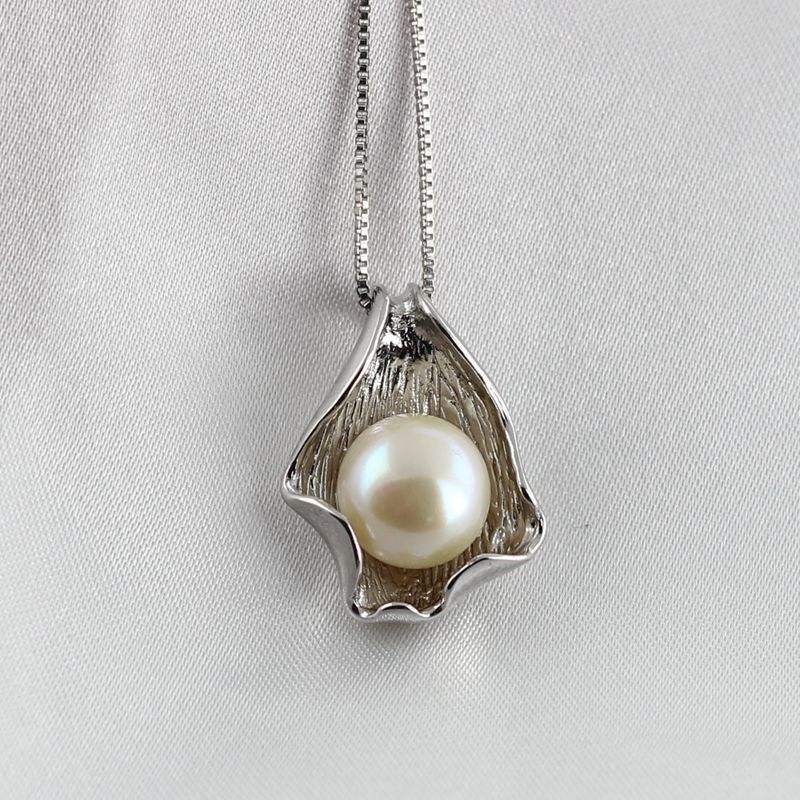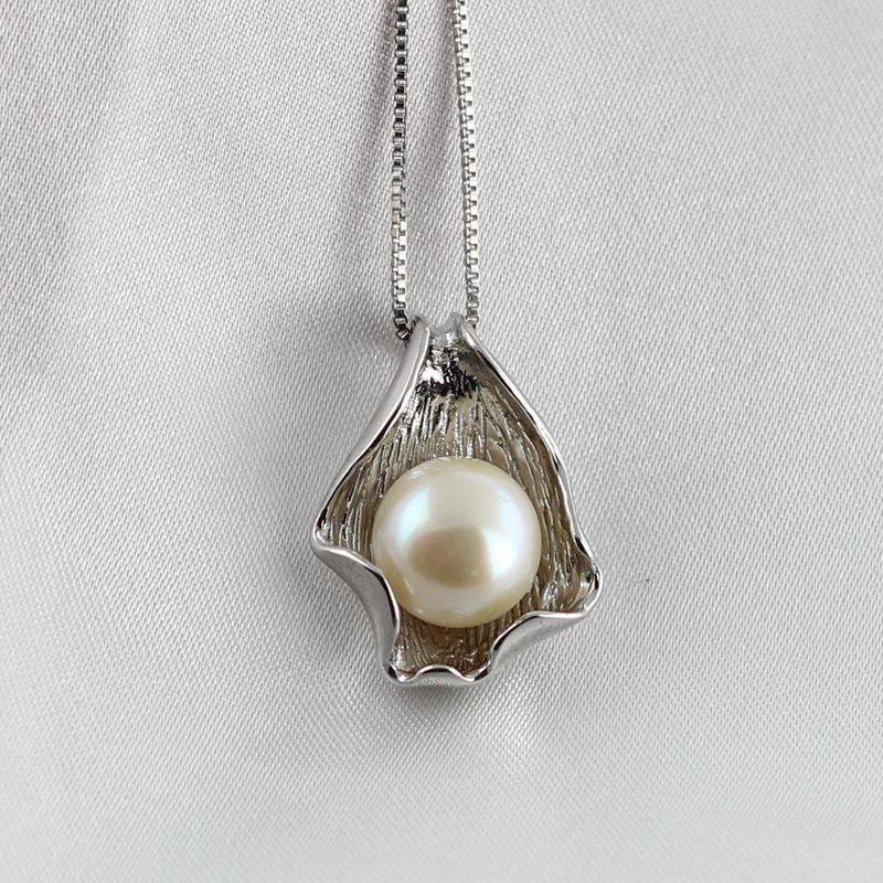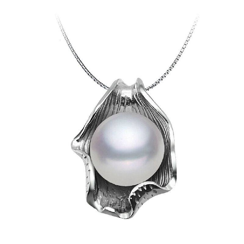 Pendentif en argent S925 style coquillage avec perle d'eau douce, chaîne incluse, bonne qualité, perle de 10-11 mm, propre et lisse, breloques de perles de haute qualité